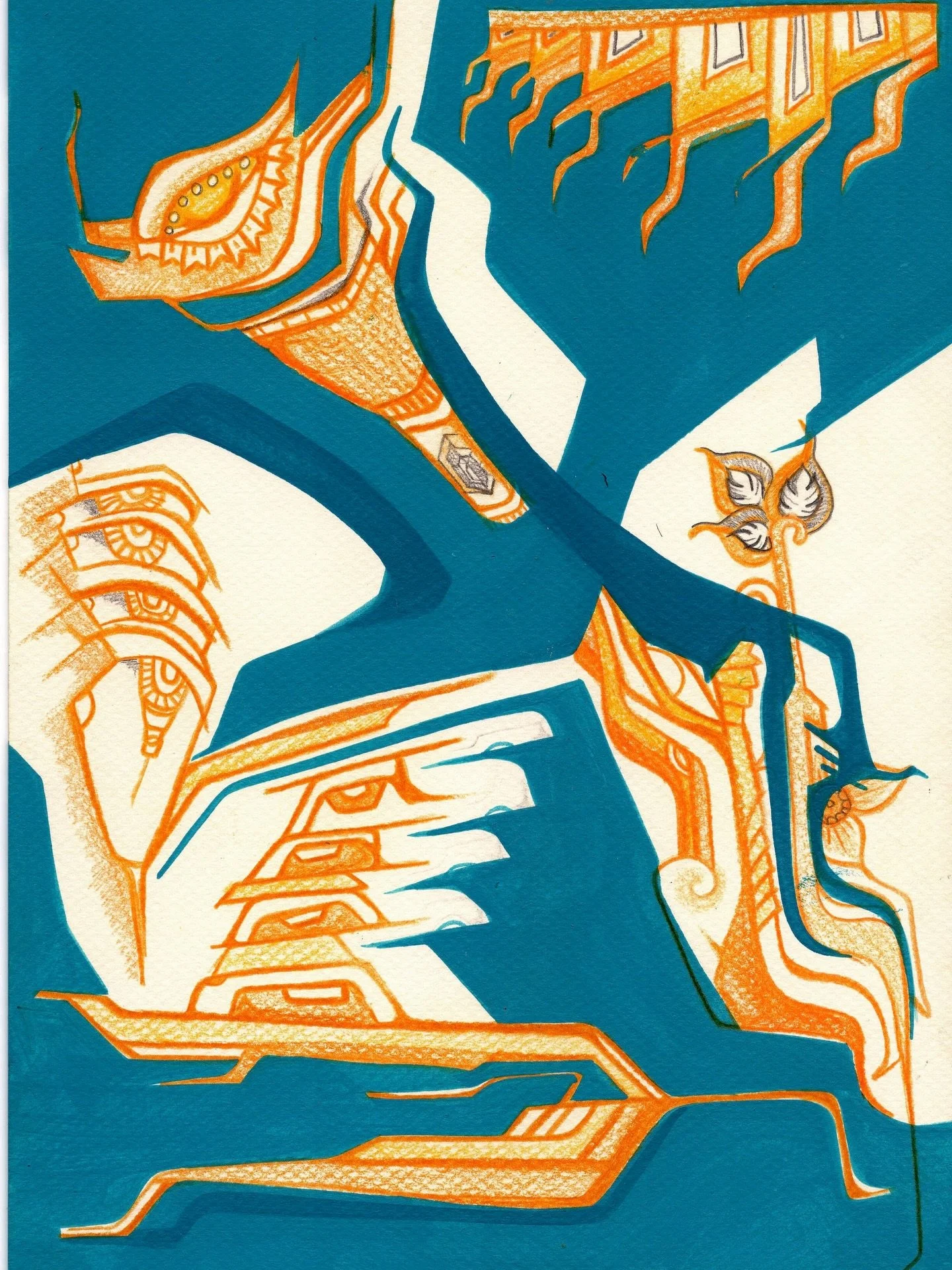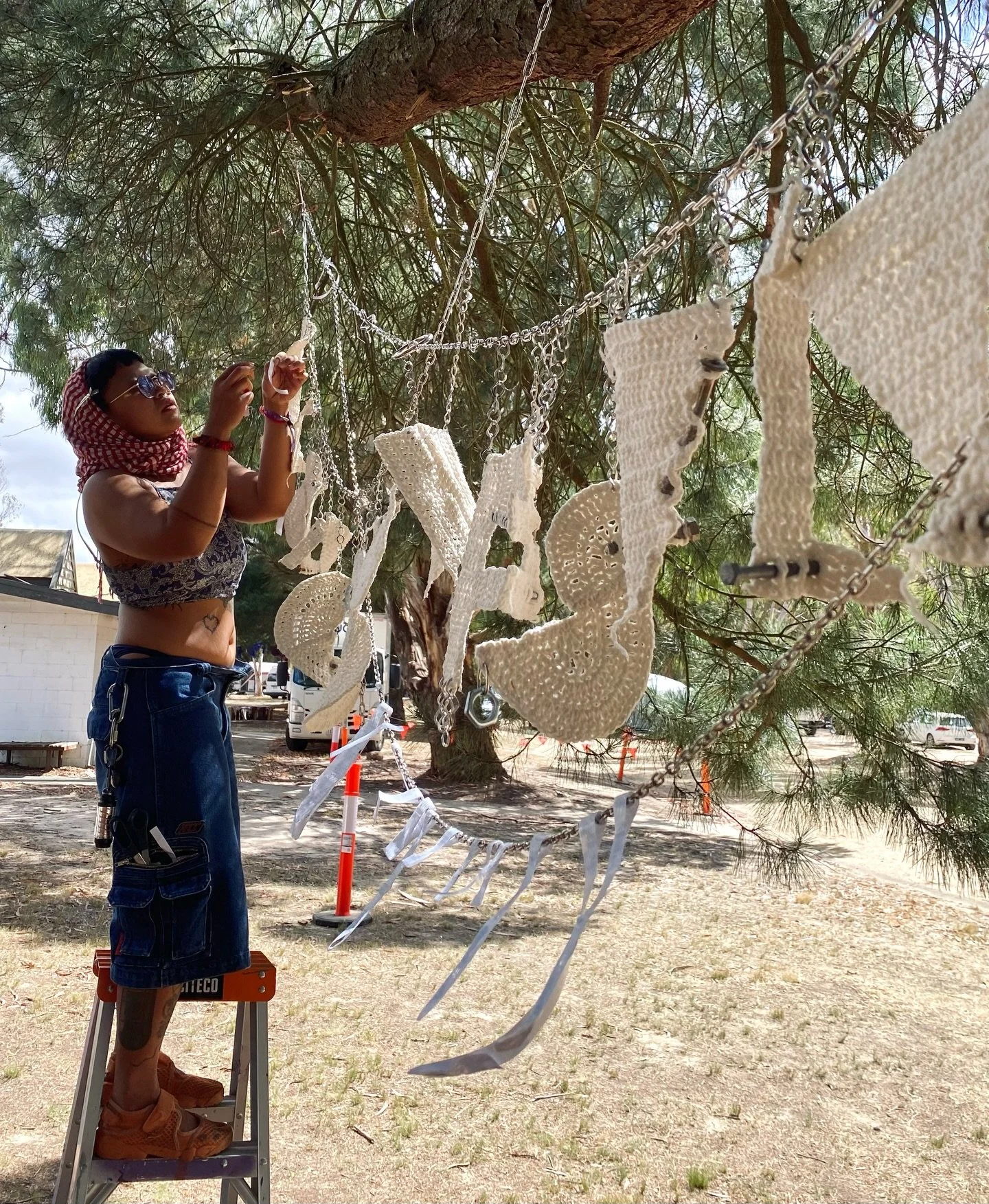 Saturated in raw creativity Mam plays with fabrics and threads, paper cut-outs, depictions of thoughts, emotions and memories in monochromatic paintings, and combining found objects under their artist pseudonym twelvebytwelve.